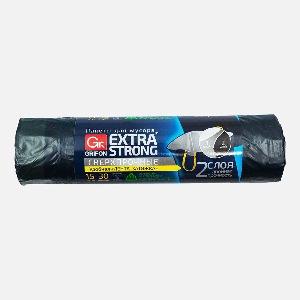 Пакеты Грифон д/мусора двухслойные с завязками 30л 50х60см 15шт в рул