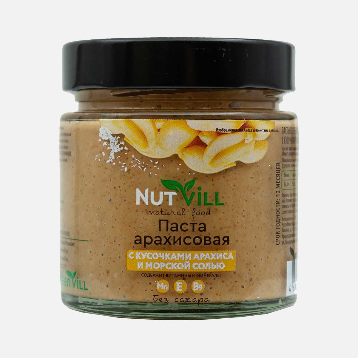 Паста НатВилл арахисовая кусочки арахиса и морская соль ст/б 180г
