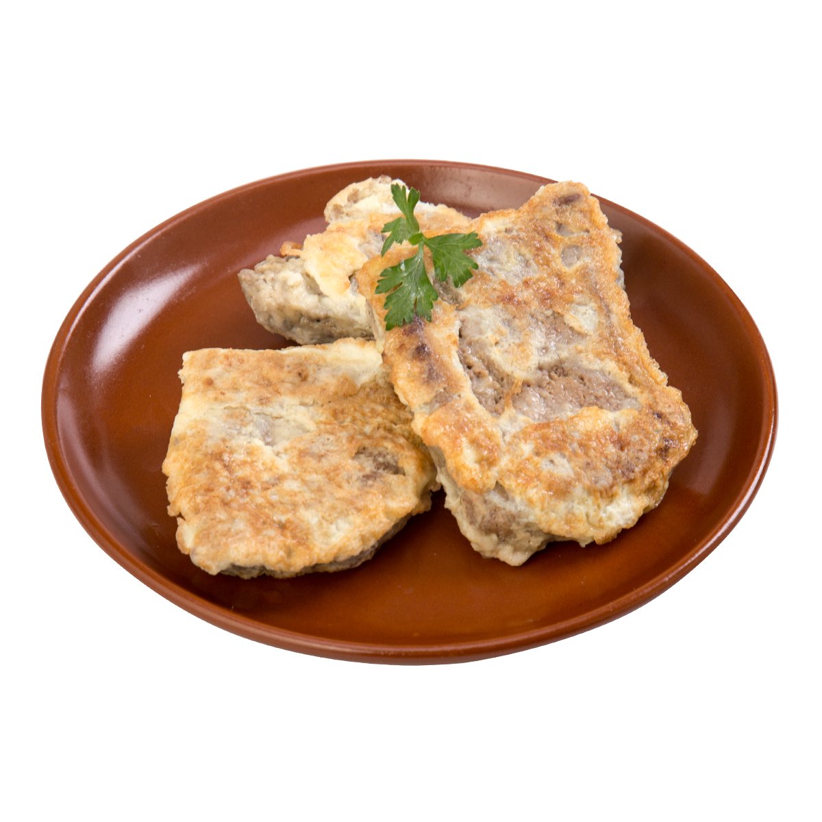 Печень говяжья, молоко цельное, мука пшеничная в/с, масло подсолнечное, яйцо куриное, соль, зелень, перец черный молотый.