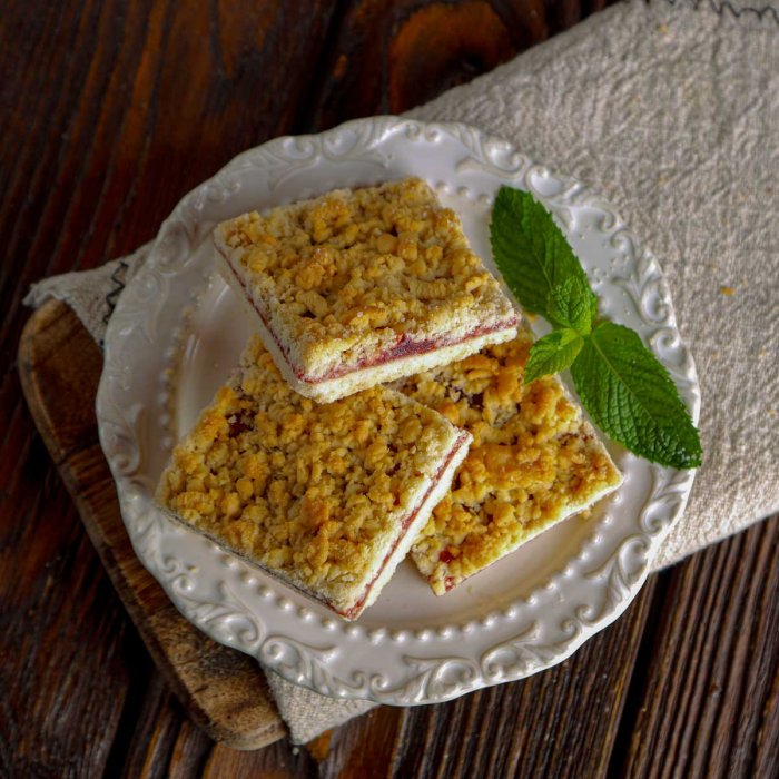 Мука пшеничная в/с, конфитюр Клубника, масло сливочное, сахар, яйцо куриное, уксус, сода