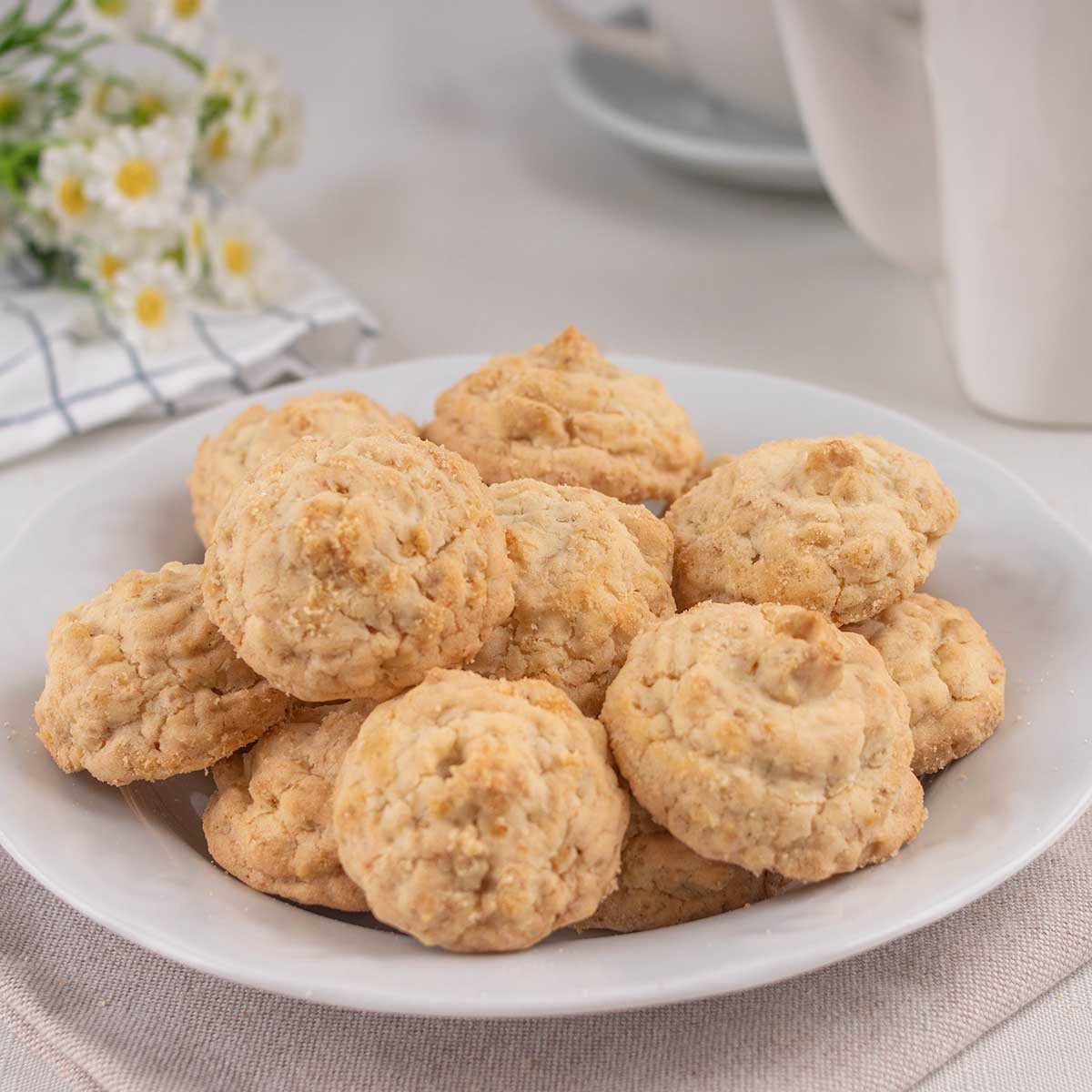 Мука пшеничная в/с, масло сливочное, крупа хлопья овсяные, сахар-песок, яйцо куриное, сода.
