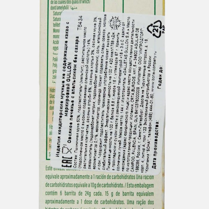 Печенье Гуллон овсяное с апельсином без сахара 144г