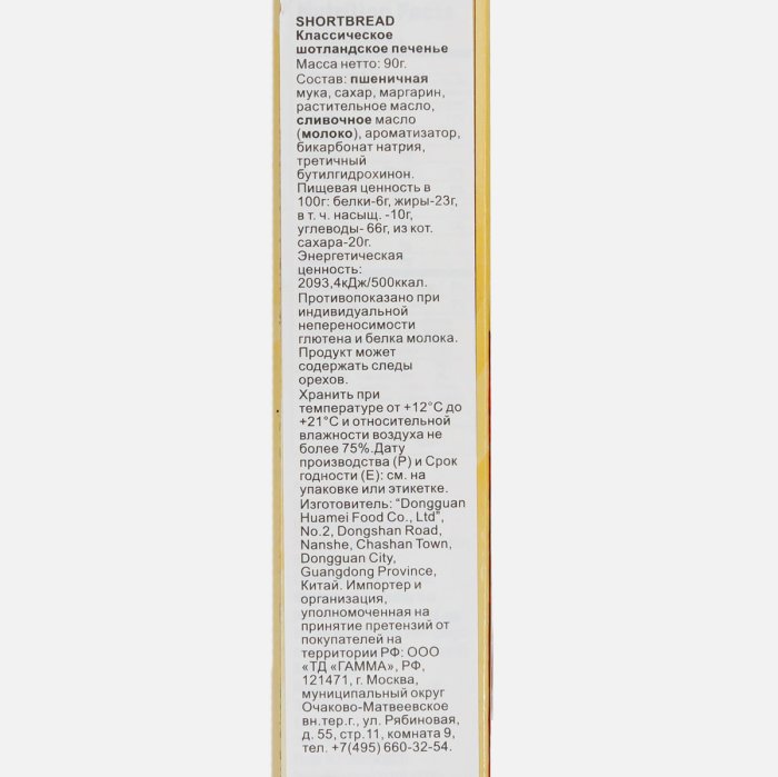 Печенье Хуамей Шотбрэд Классическое шотландское 90г
