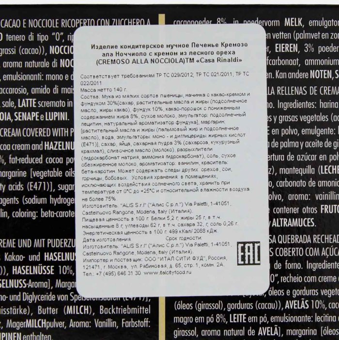 Печенье Каса Ринальди Кремозо ала Ноччиоло c кремом из лес ореха 140г