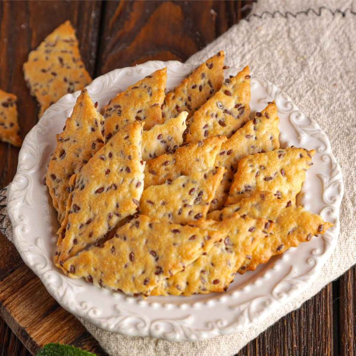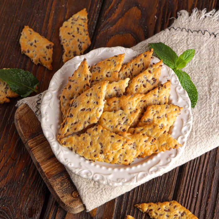 Идеальный выбор для тех, кто любит хрустящие, лёгкие угощения! Этот крекер с семенами льна создан из простых ингредиентов: муки, молока, соли и сахара. Немного соды для легкости, и вот перед вами идеальный крекер с насыщенной льняной текстурой. Закажите с доставкой и откройте для себя это удовольствие, которое подойдёт к любому перекусу или просто для вкусного перерыва.