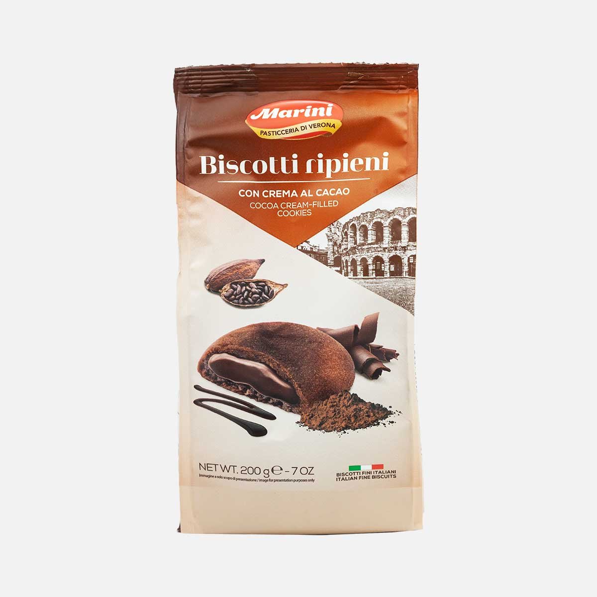 Печенье Марини Бискоти рипиени с шоколадным кремом 200г