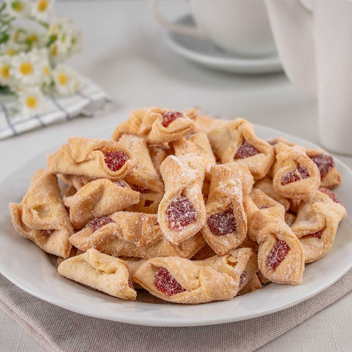 Мука пшеничная в/с, конфитюр Клюква, масло сливочное, сметана, сахар, сахарная пудра, соль.
