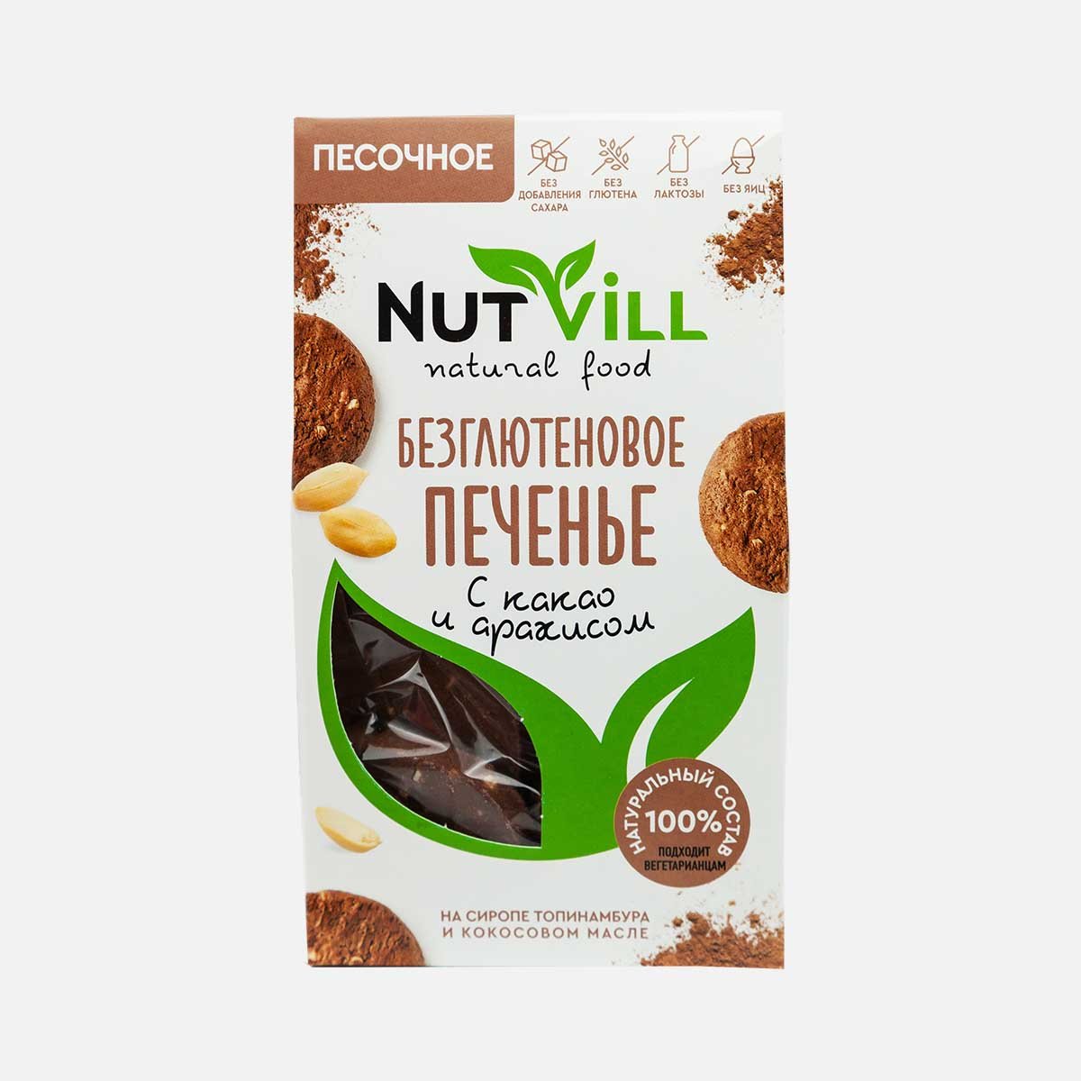 Печенье НатВилл песочное какао и арахисом к/к 100г