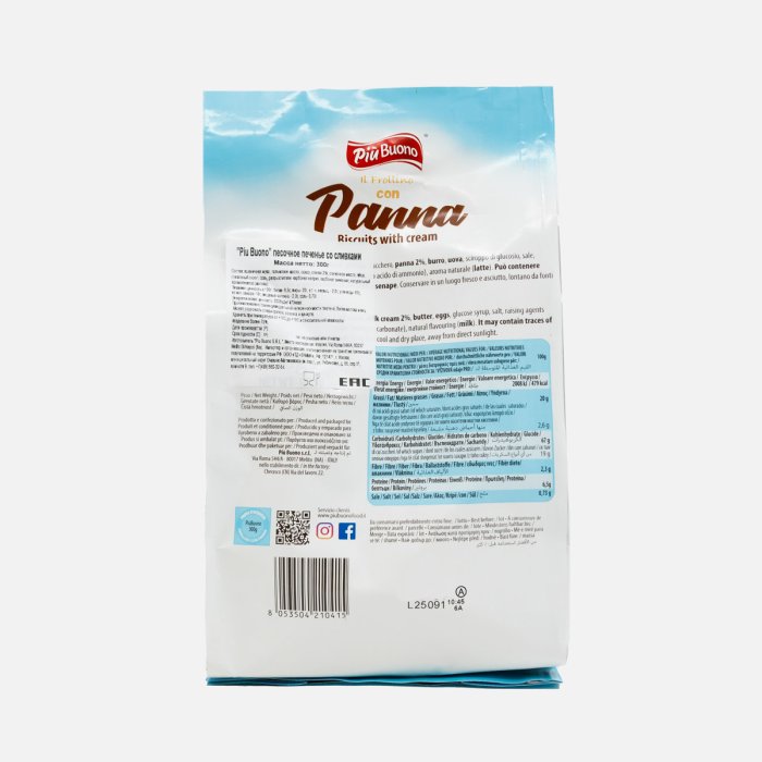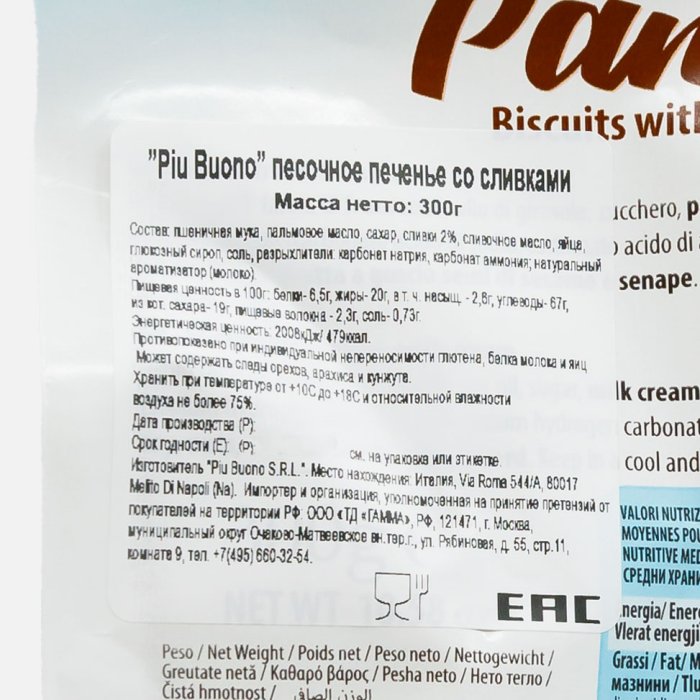 Печенье Пиу Буоно песочное со сливками 300г