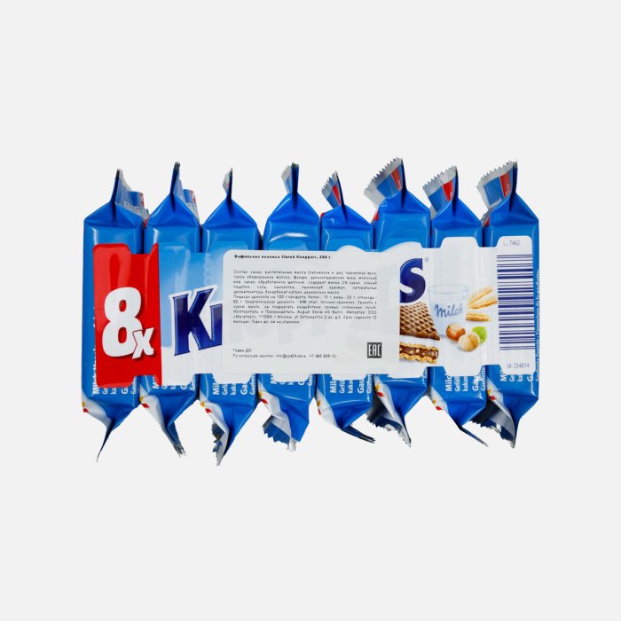 сахар, растительные масла (пальмовое и ши), пшеничная мука, сухое обезжиренное молоко, фундук, цельнопшеничная мука, молочный жир, какао, обработанное щелочью, содержит менее 2% какао, соевый лецитин, соль, сыворотка, пшеничный крахмал, натуральные ароматизаторы, бикарбонат натрия, арахисовое масло.