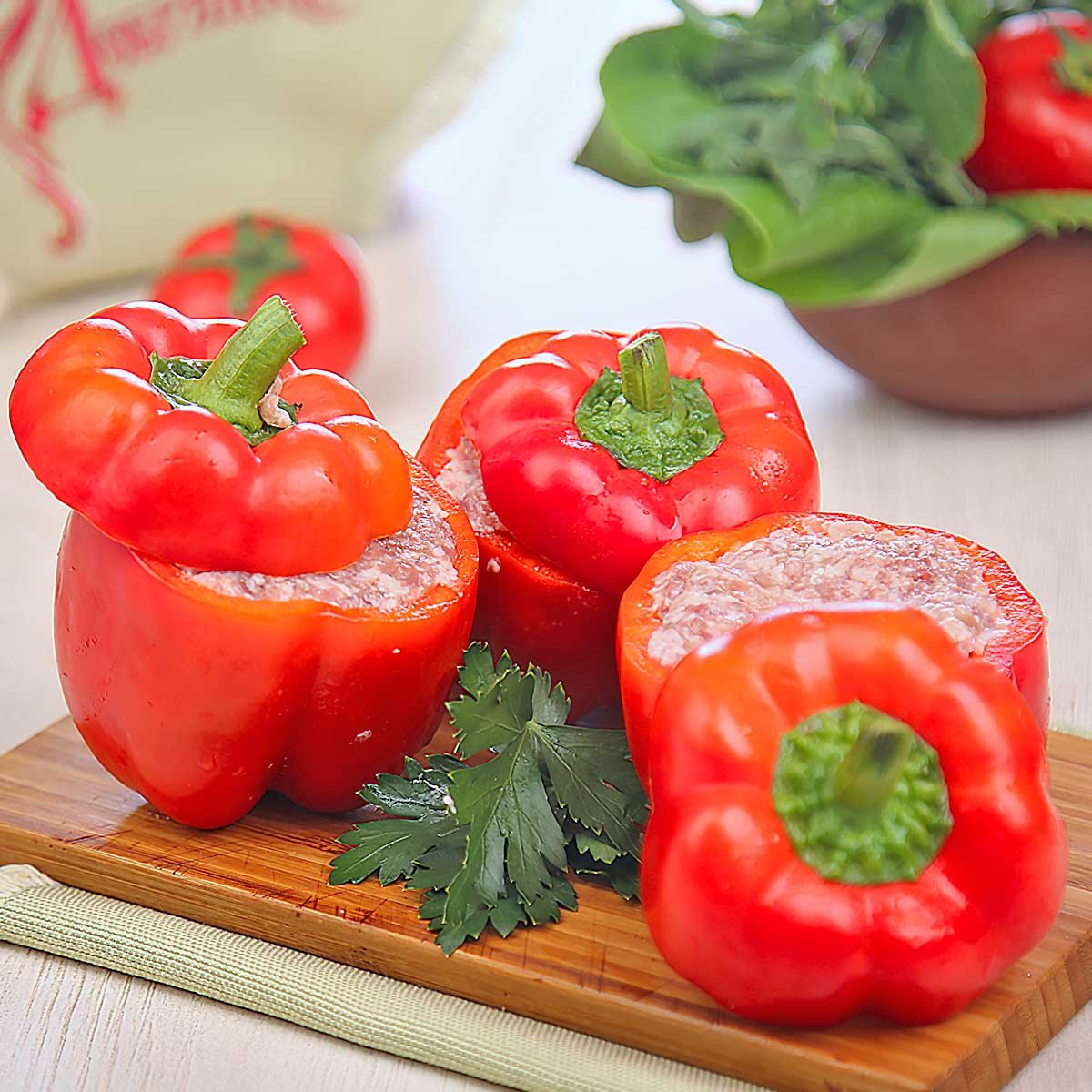 Перец болгарский, мясо говядина, лук репчатый, мясо свинина, свинина шпик боковой, рис, масло подсолнечное, чеснок, соль, перец черный молотый.