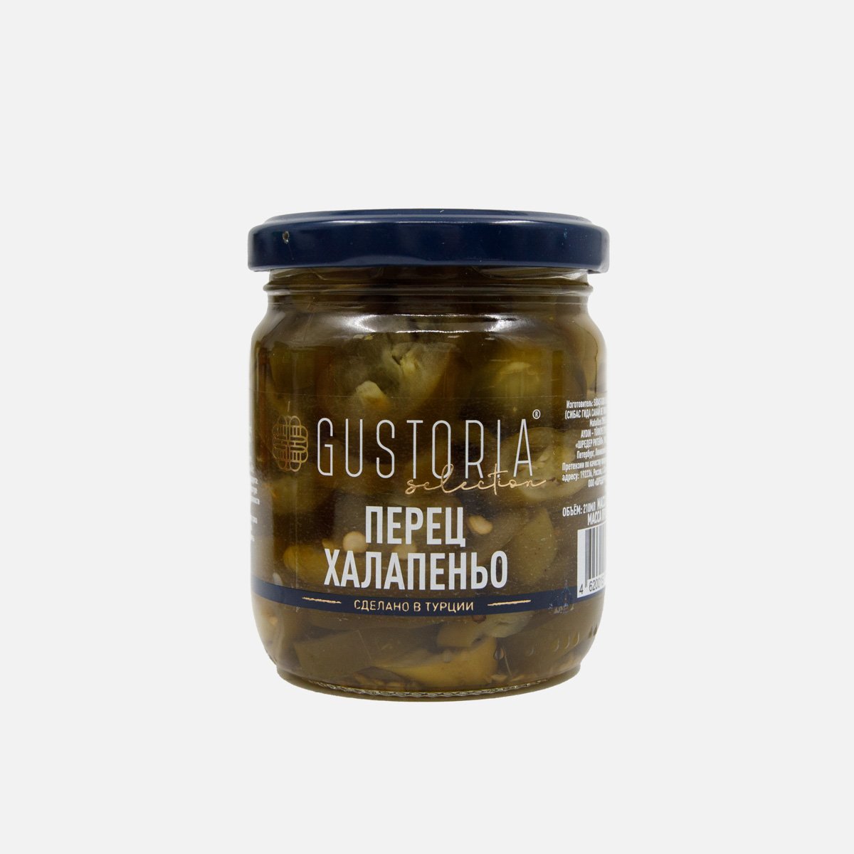Перец Густория Халапеньо зеленый резаный ст/б 90г/210мл