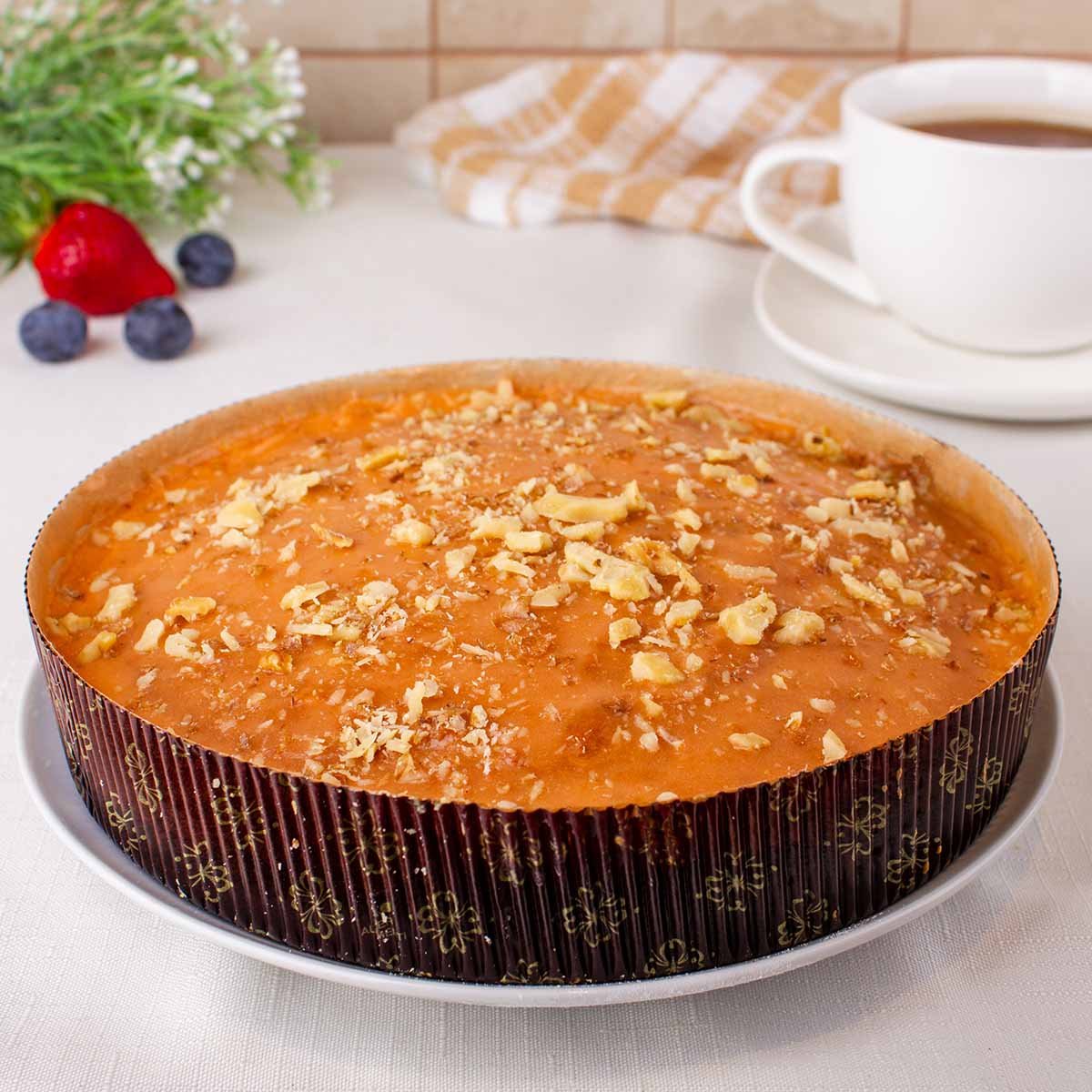Сок моркови придает этому пирогу естественную сладость, дополняя вкус изюма и грецкого ореха. Цельнозерновая мука добавляет плотность, а сочетание с сахарной пудрой и легкой ноткой ванили делает пирог особенным. Закажите с доставкой – и этот яркий, насыщенный пирог порадует вкусом и пользой.
