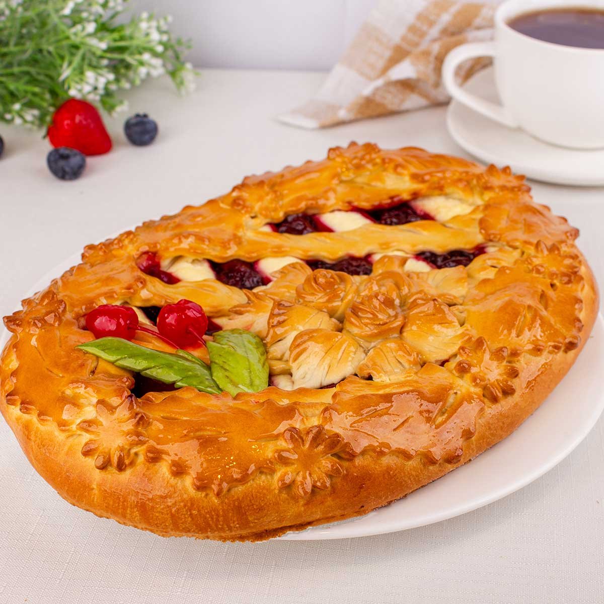 Пирог Праздничный с вишней и творогом вес