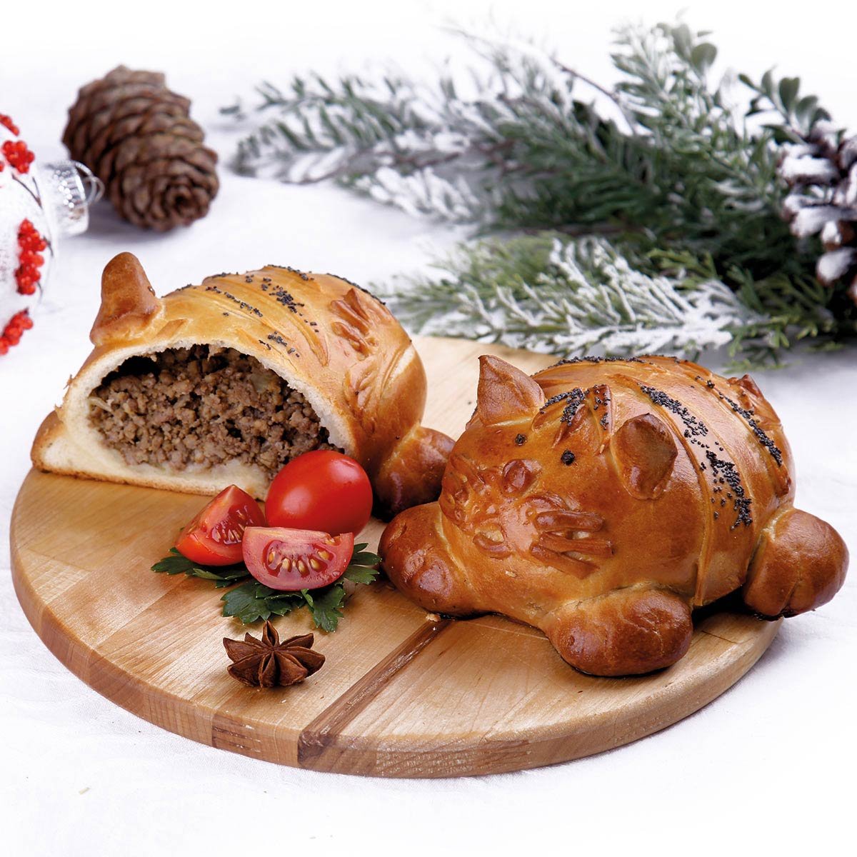 Мясо говядина, лук репчатый, мука пшеничная в/с, масло сливочное, масло подсолнечное, молоко цельное, яйцо куриное, сахар-песок, сметана, соль, дрожжи прессованные, перец черный молотый