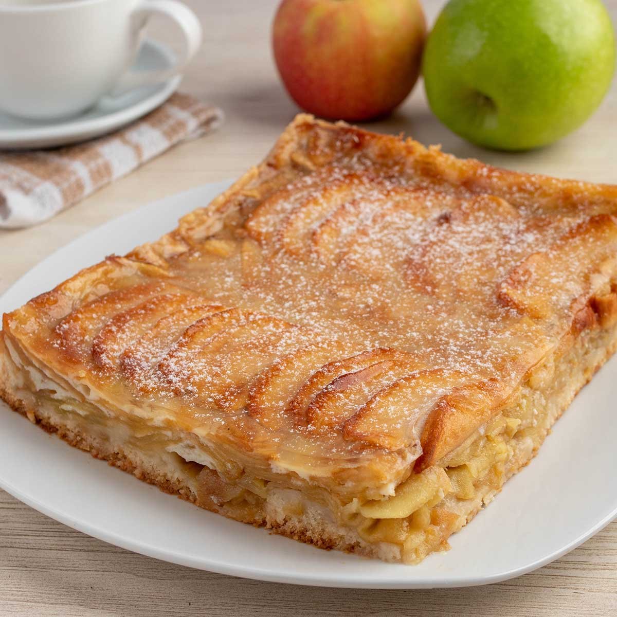 Яблоки, сахар, мука пшеничная в/с, масло сливочное, яйцо куриное, коньяк, сода, пудра сахарная, ванилин.