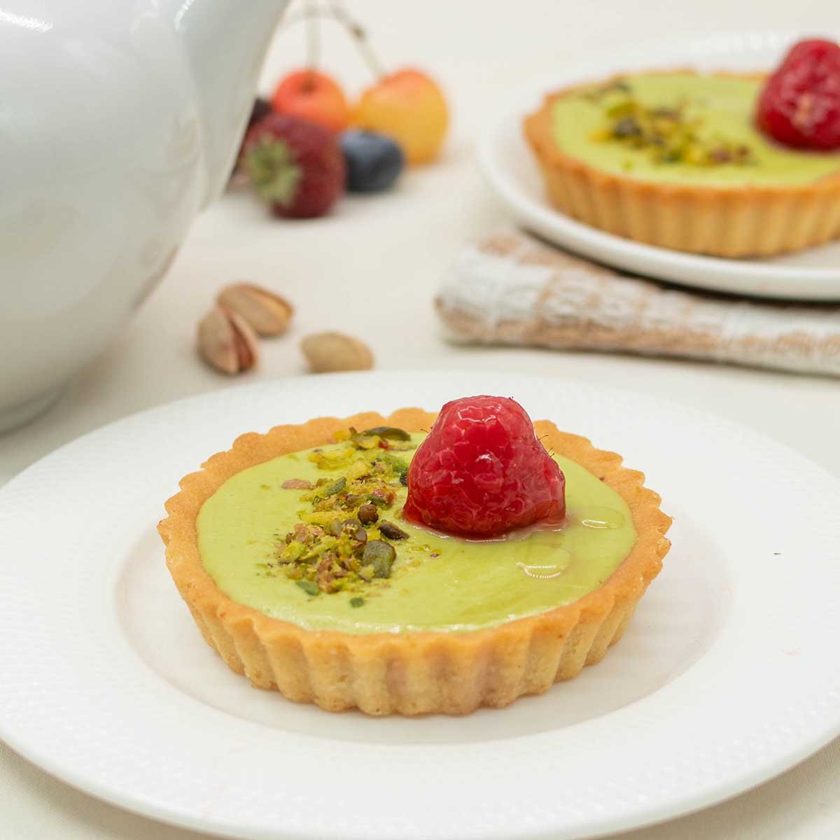 Идеальный десерт для ценителей оригинального вкуса. Хрустящая песочная основа (мука, масло сливочное, сахар, яйцо, соль, ароматизатор Лимон, сода) в сочетании с насыщенным кремом из фисташки, сливок, растительных сливок и пудры сахарной. Украшение из малины и ядра фисташки подчеркивает естественную сладость и свежесть. Это пирожное с доставкой станет ярким дополнением к любому событию.