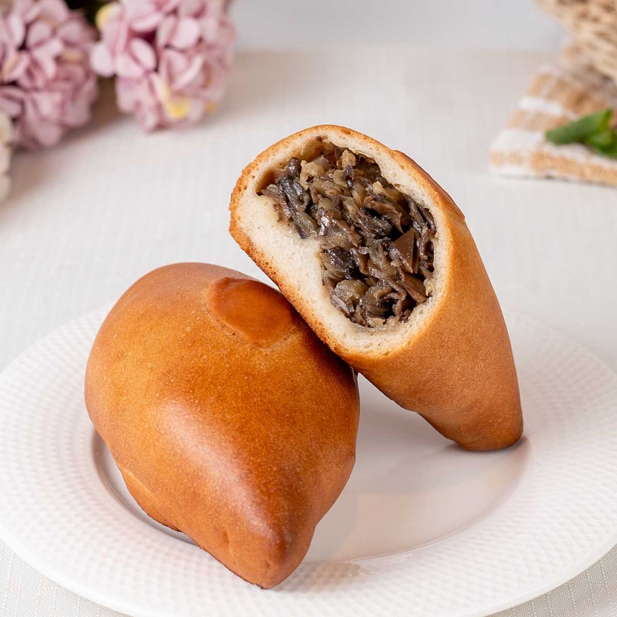 Тесто (мука пшеничная в/с, масло подсолнечное, сахар, дрожжи, соль), шампиньоны, капуста белокочанная, масло подсолнечное, лук репчатый, соль, перец ч/м.