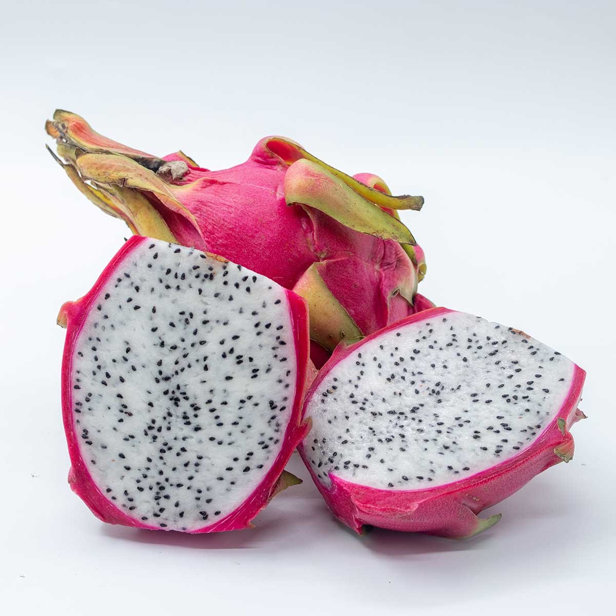 Красочный драконий фрукт с необычным сладковатым освежающим вкусом, в котором различают ноты: киви, груши и арбуза. Питахайя содержит много витамина С, железа, кальция и магния, отличается низкой калорийностью и практически не содержит сахара. Прекрасно сочетается с другими фруктами в десертных салатах или смузи.
