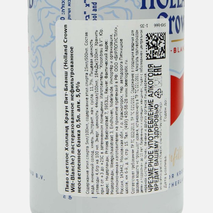 Пиво Холланд Краун Вит-Бланш свет нефильтр паст 5% ж/б 0,5л