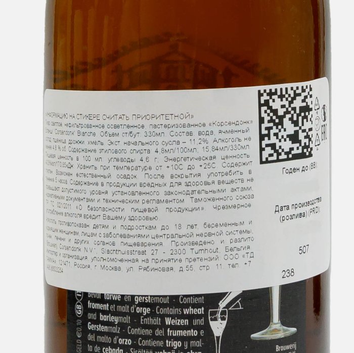 Пиво Корсендонк Бланш свет нефильтр паст 4.8% ст/б 0,33л