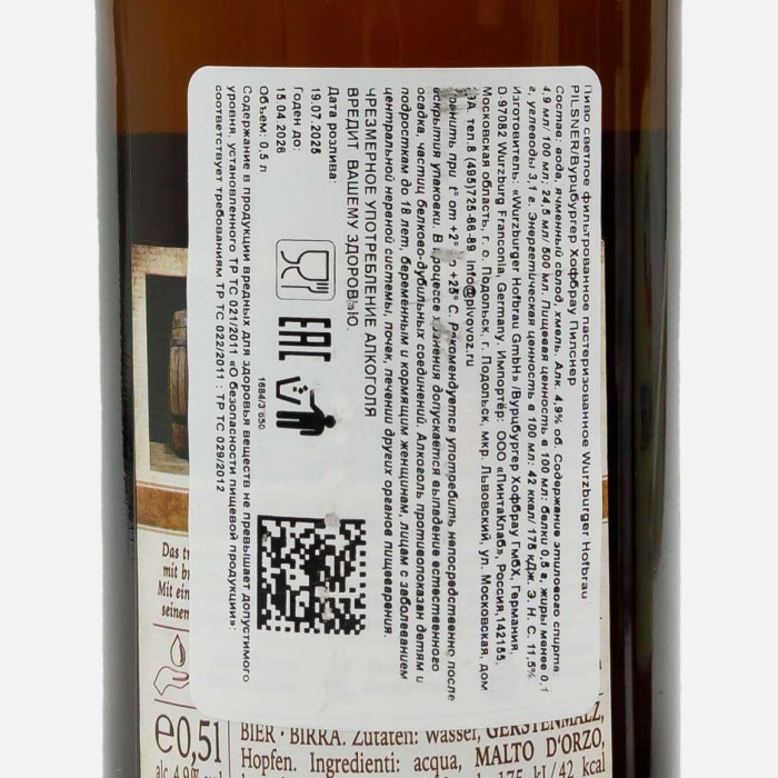 Пиво Вурцбургер Хофбрау Пилснер свет фильтр паст 4.9% ст/б 0,5л