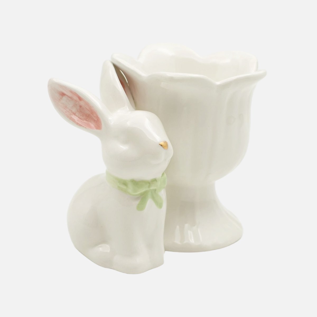 Подставка Анна Лафарг д/яйца Кролик в цветах молочно-золотист 7см керам