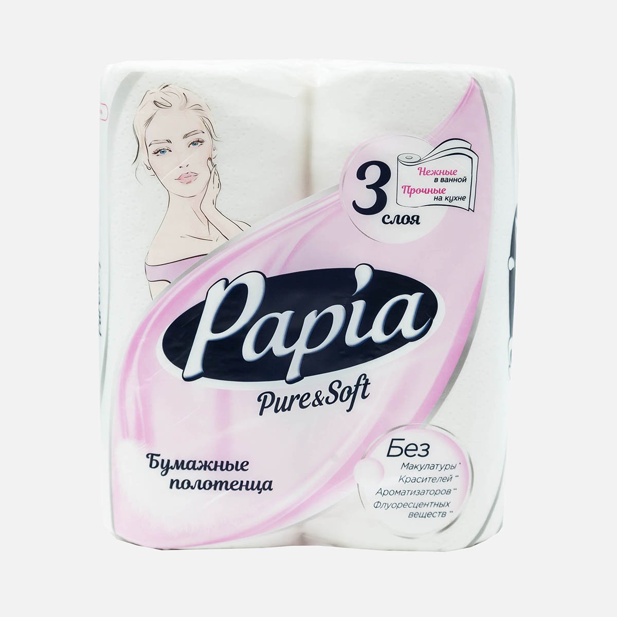 Полотенца Папиа Пюр энд Софт бумажные 3сл 2рул