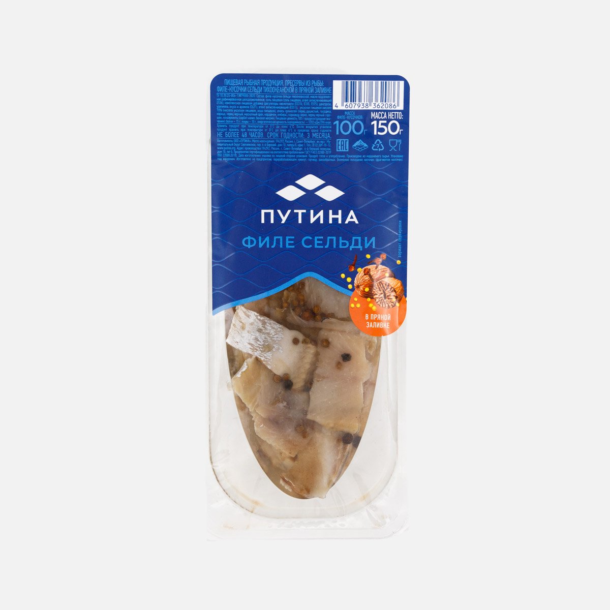 Пресервы Путина Филе-кусочки сельди в масле в прян заливке 150г