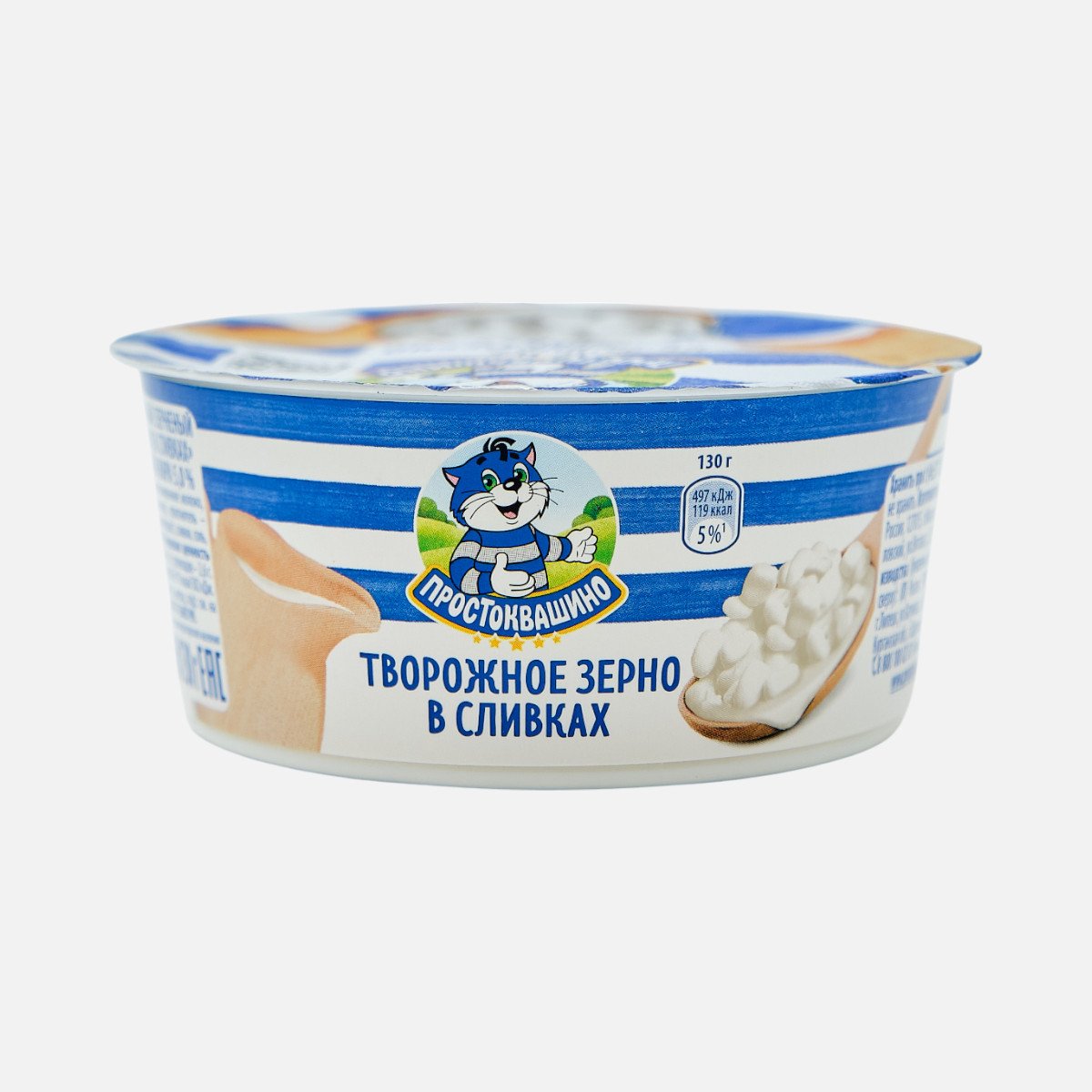 Прод твор Простоквашино 5% Творожное зерно в сливках 130г