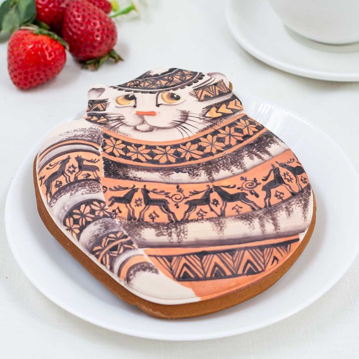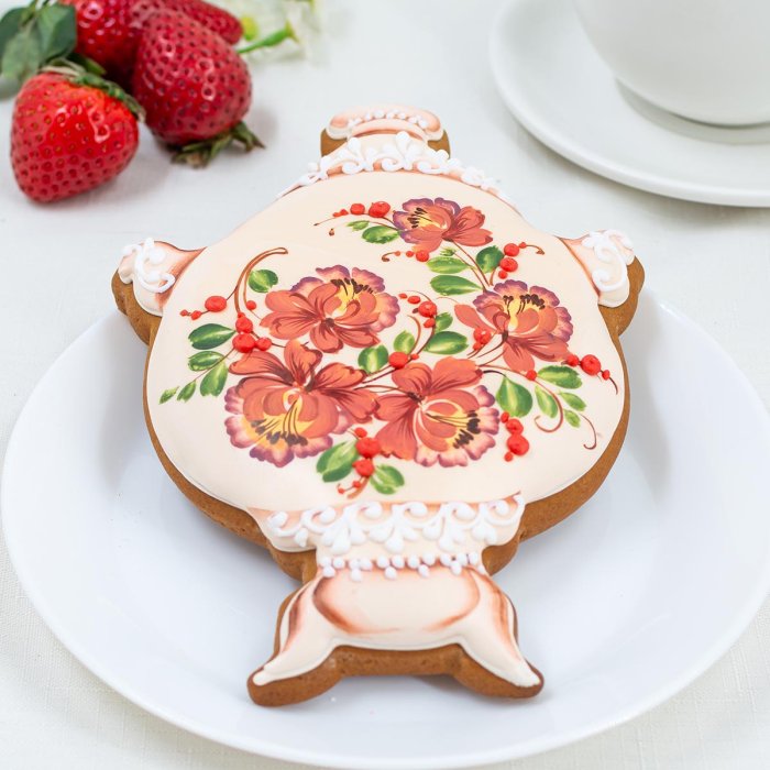 Пряник с художественной росписью — это не только десерт, но и настоящий эстетический опыт. Вкус сочетает мягкую основу, приготовленную из муки, сахара, меда и масла сливочного, с легким ароматом корицы, имбиря, кардамона и мускатного ореха. Каждый кусочек украшен тщательно продуманной росписью с использованием пищевых красителей, что придает ему особый шарм. Глюкозный сироп и сода обеспечивают идеальную текстуру, а лимон добавляет свежести. Наслаждайтесь этим пряником во время чая, а быстрая доставка подарит вам момент наслаждения без лишних хлопот.