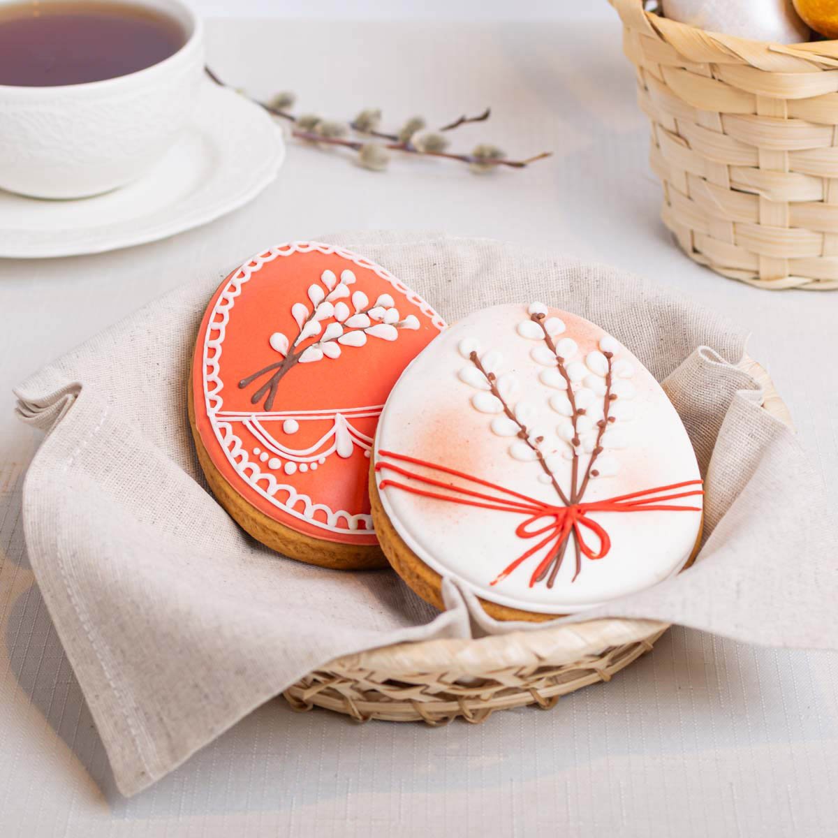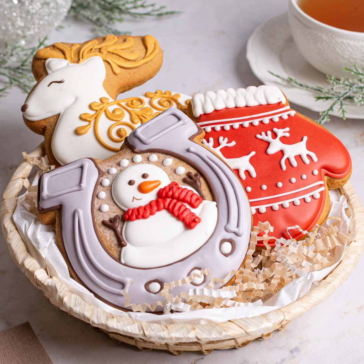 Мука пшеничная в/с, сахарная пудра, сахар, мед, яйцо куриное, масло сливочное, лимон, сода, корица, имбирь, кардамон, мускатный орех, краситель пищевой.