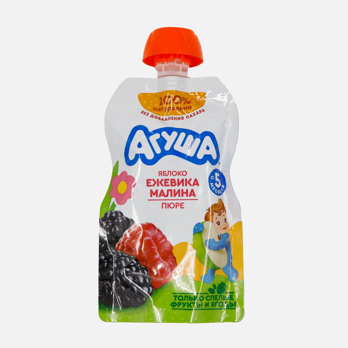 Пюре Агуша фруктово-ягодное Яблоко/ ежевика/малина с 6мес дой/пак 90г