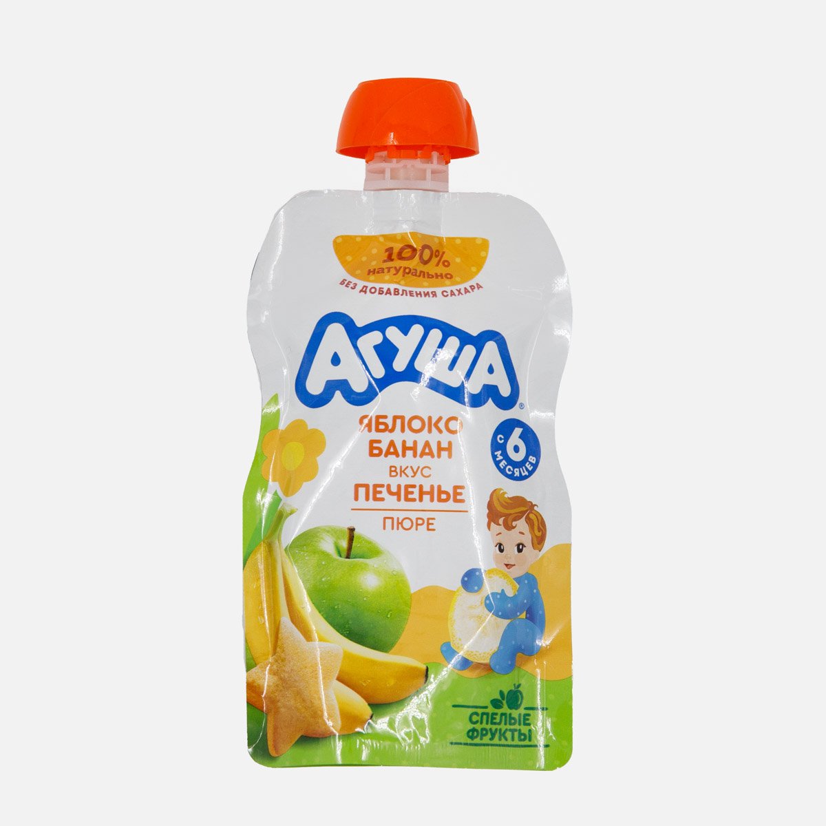 Пюре Агуша Яблоко/банан со вкусом печенья с 6мес дой/пак 90г