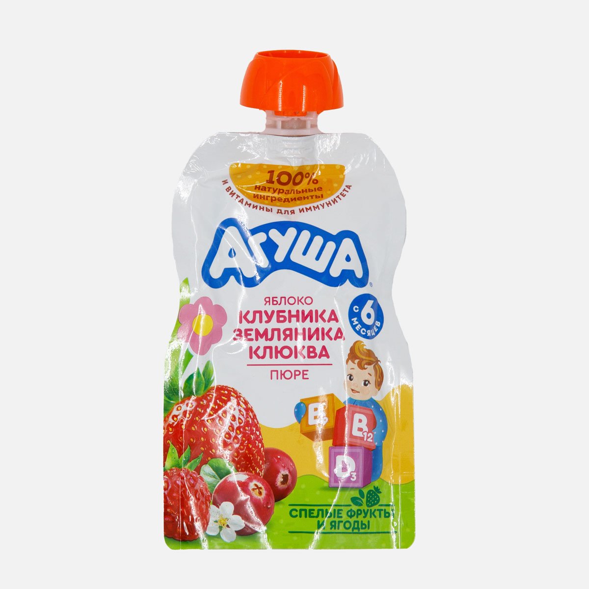 Пюре Агуша Яблоко/клубника/земляник клюква с 6мес дой/пак 80г