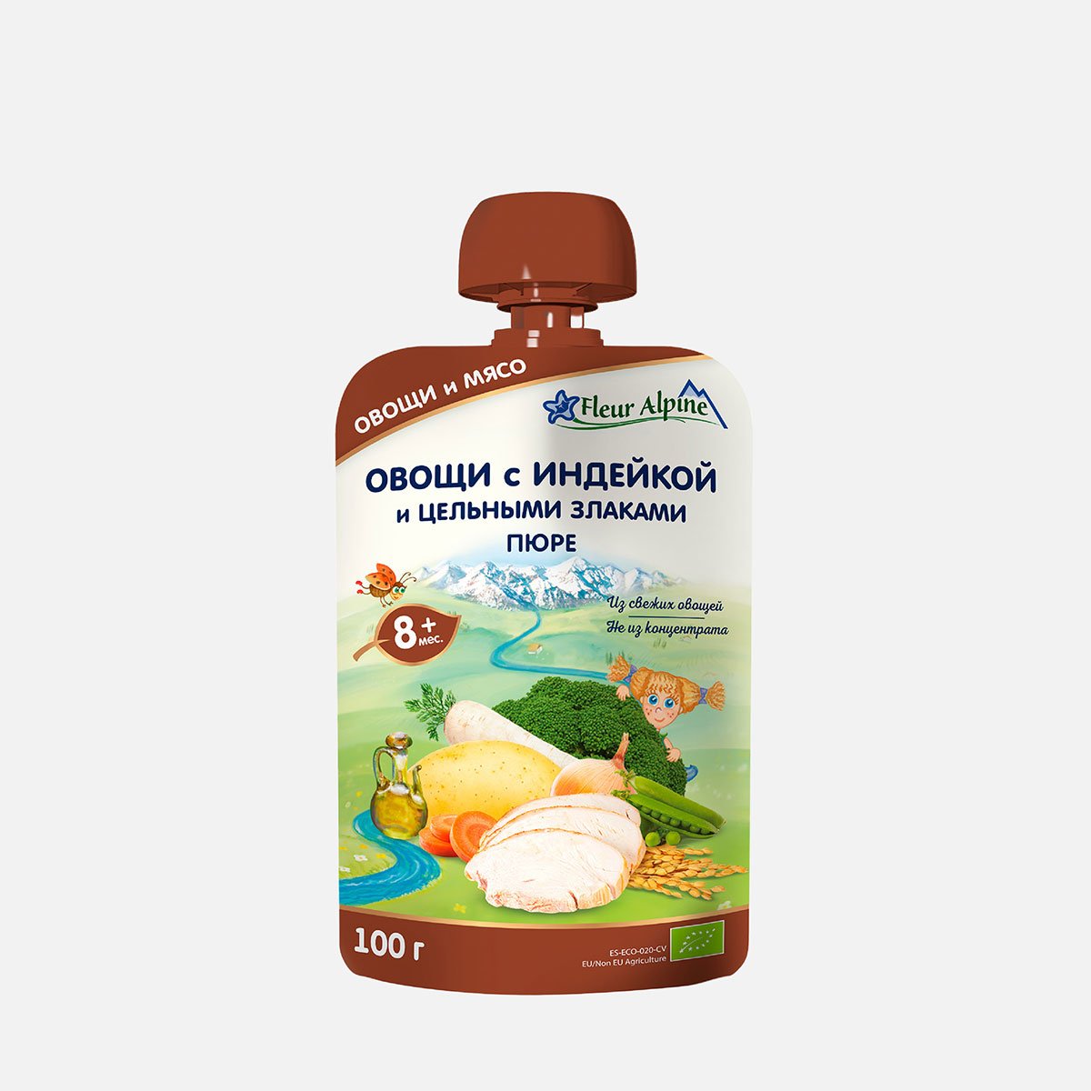 Пюре Флер Альпин Овощи с индейкой цельн злаками с 8мес дой/пак 100г