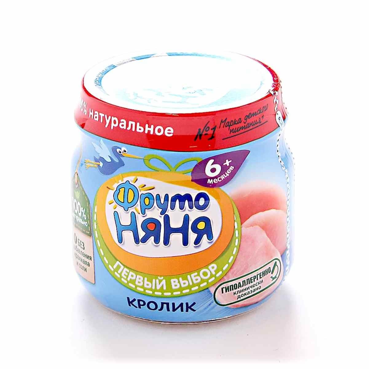 Мясное пюре "Фрутоняня" из сочной крольчатины. Рекомендовано для питания малышей от 6 месяцев жизни.
