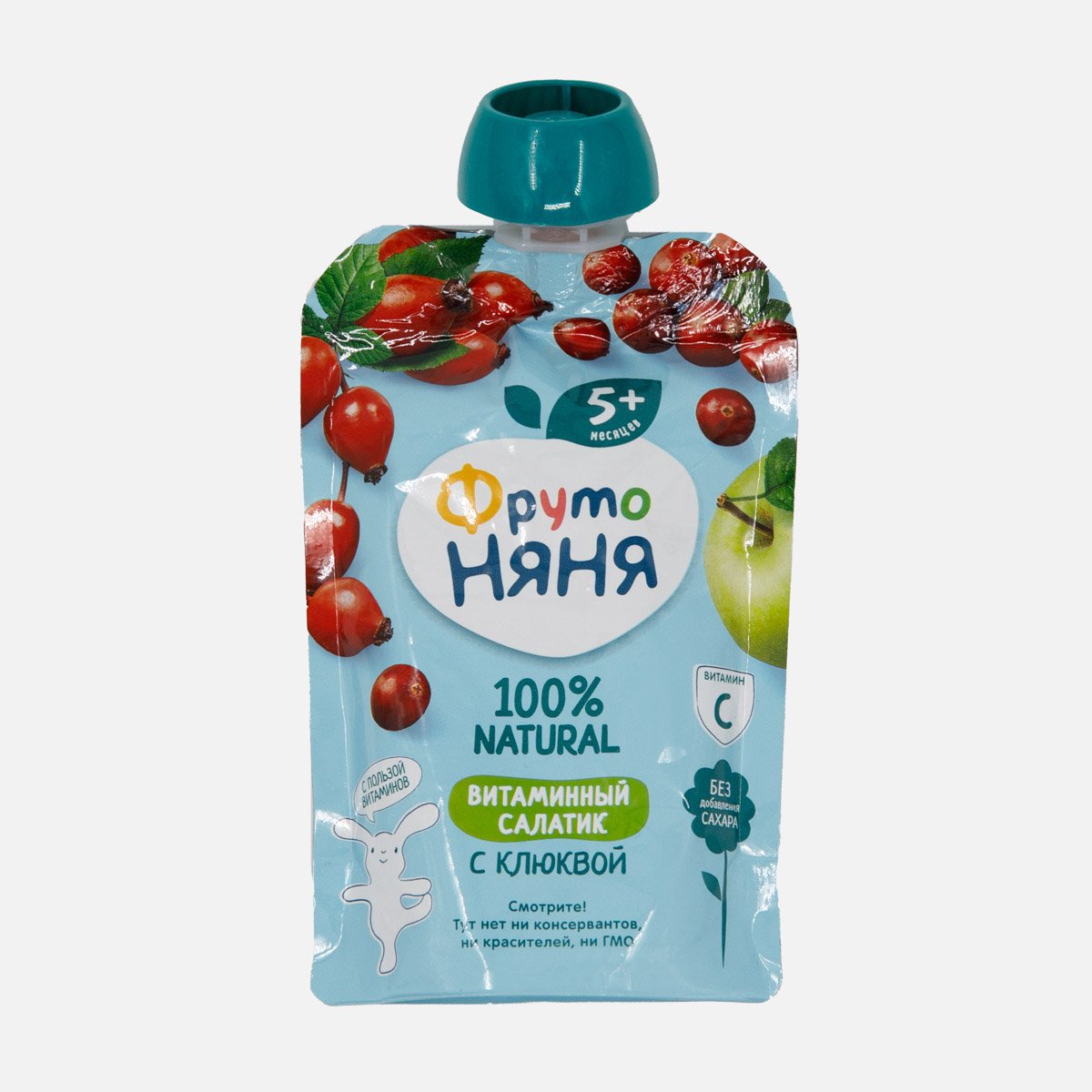 Пюре ФрутоНяня из яблок/шиповника клюквы витамин салатик с 5мес 90г
