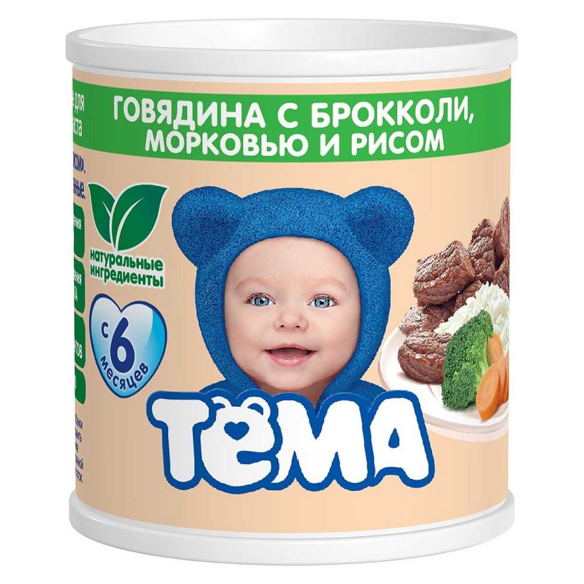 Пюре Тёма Говядина с брокколи морковью и рисом с 6мес ж/б 100г