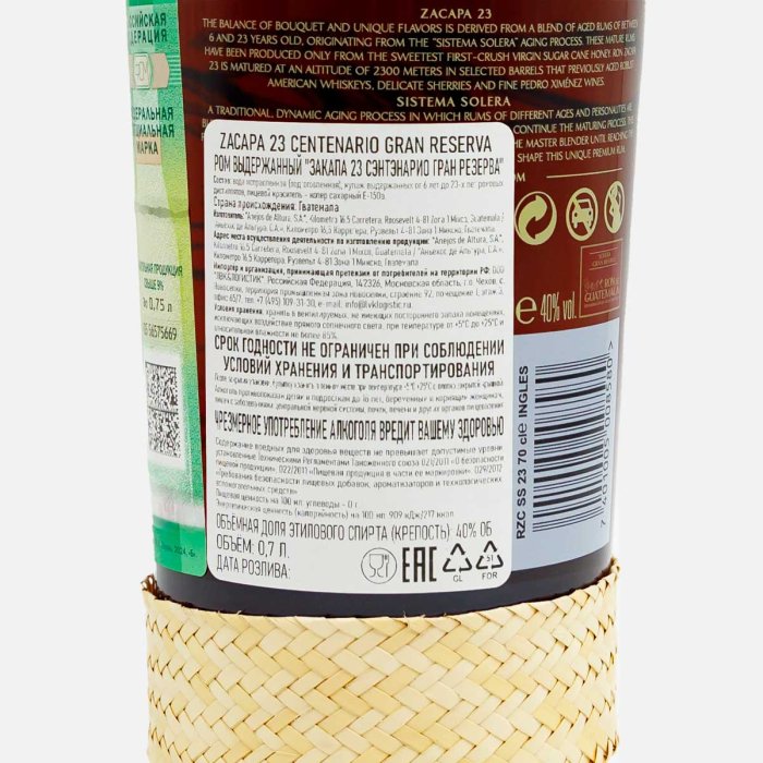 Ром Закапа 23 Сэнтэнарио Солера Гран Резерва выдержан 40% п/у 0,7л