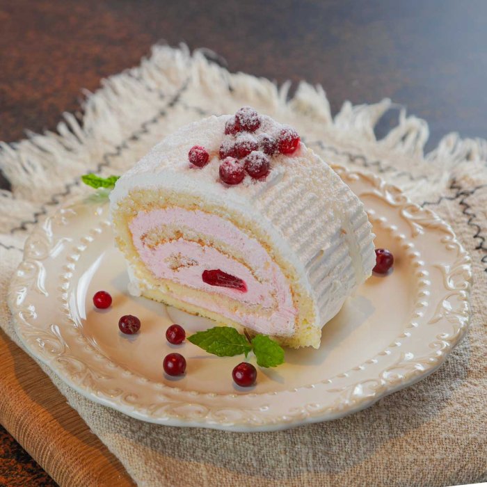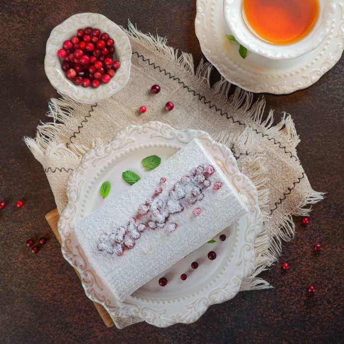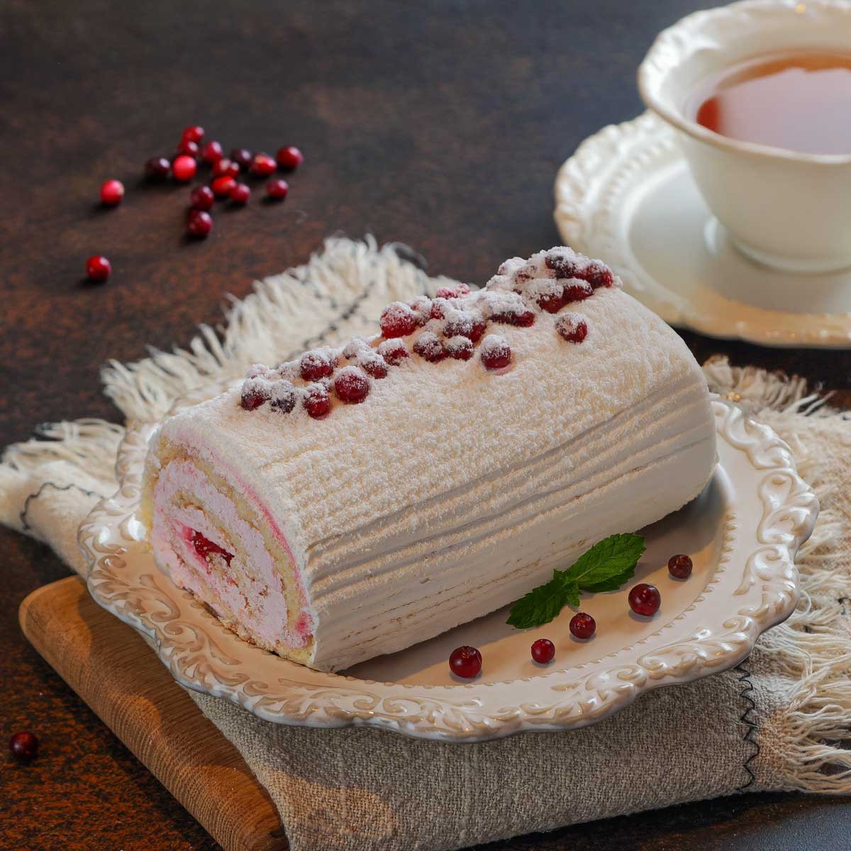 Сливки растительные, конфитюр Брусника с яблоком, яйцо куриное, мука пшеничная в/с, ягода брусника, коньяк, крахмал, гель кондитерский, ароматизатор Ром.
