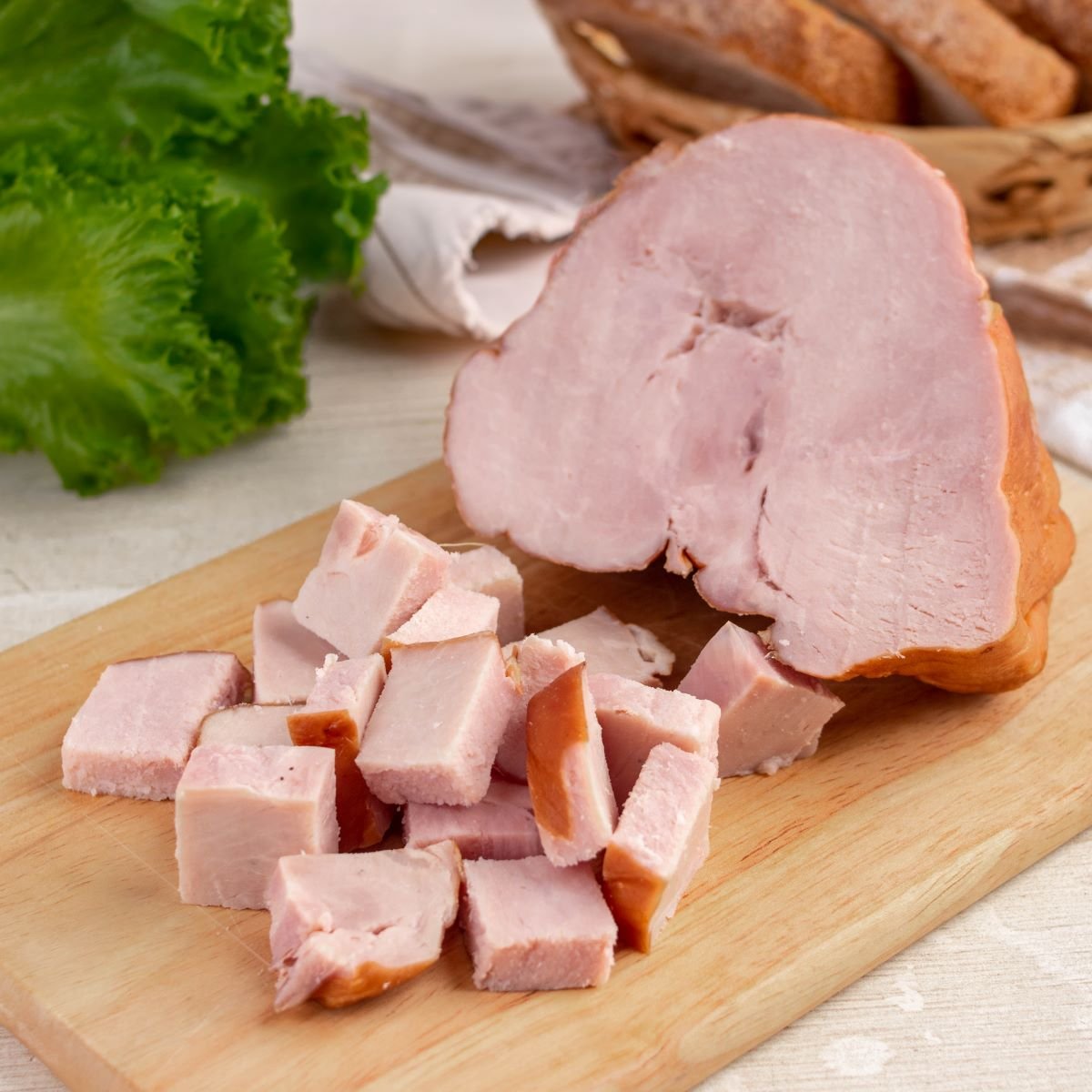Нежная и сочная варено-копченая свиная голяшка. Идеальна для запекания в рулетах, для бутербродов и домашних супов с копченостями.