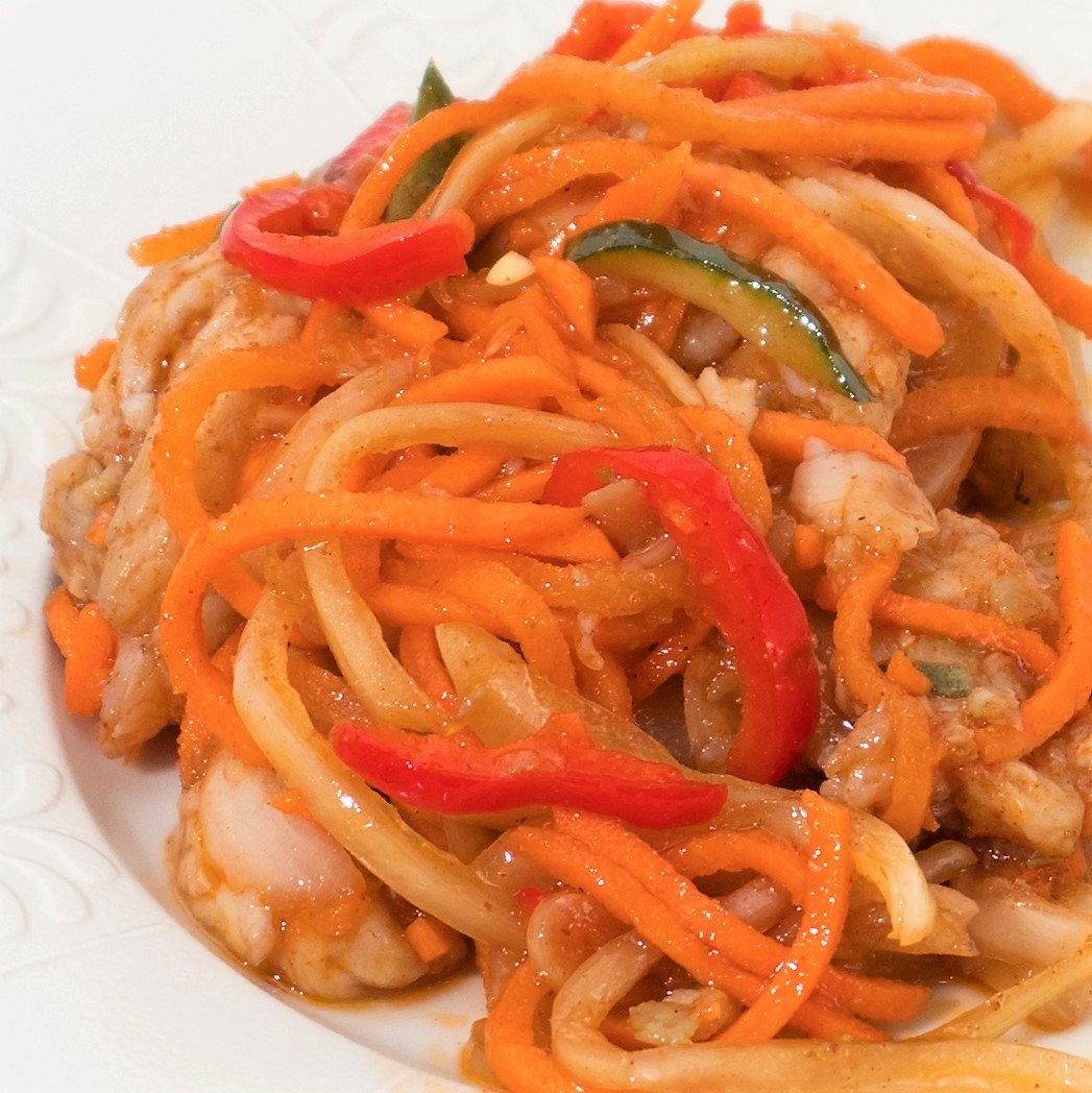 Филе судака, морковь, масло растительное, огурец свежий, перец болгарский, лук репчатый, чеснок, сахар, соль поваренная пищевая, кислота уксусная, глутамат натрия, кориандр, паприка, перец красный молотый Чили.