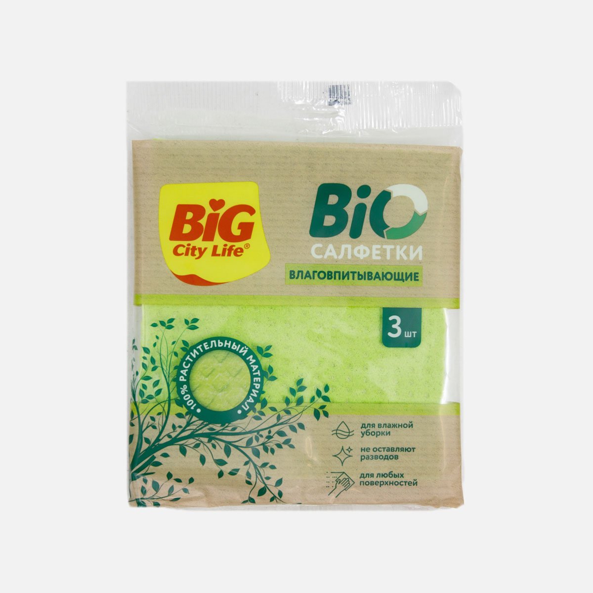 Салфетки Биг Сити влаговпитывающиее Био 3шт целлюлоза