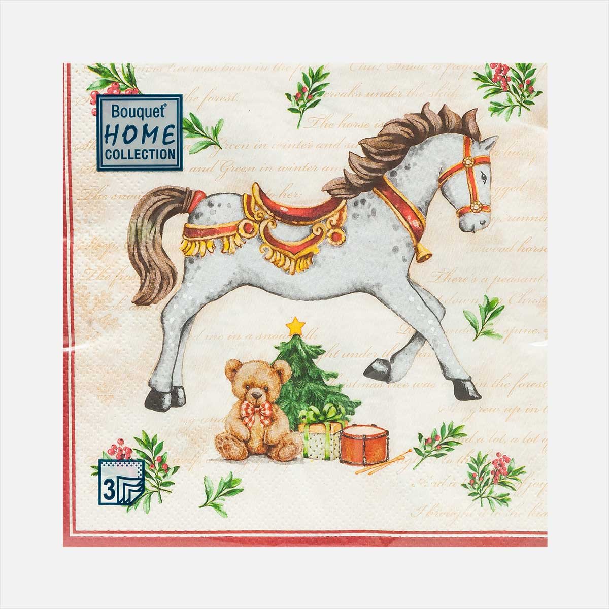 СалфеткиХоумКоллекшнНовогод лошадка Кремовый фон бум 33*33см 3сл 20лист