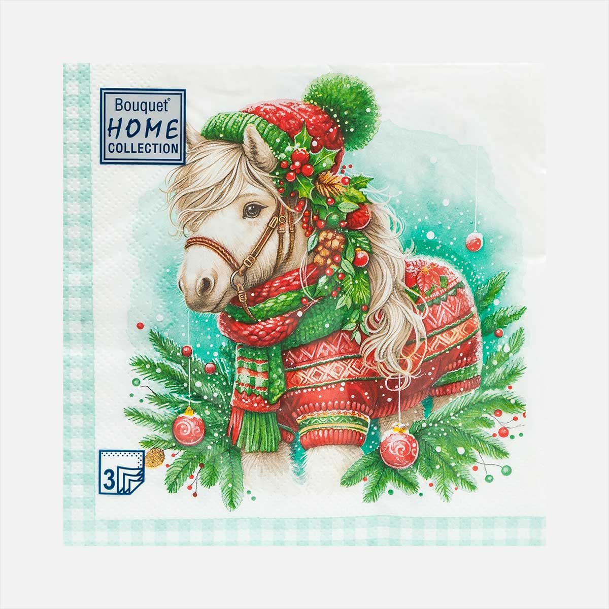 СалфеткиХоумКоллекшнНовогодний пони бум 33*33см 3сл 20лист