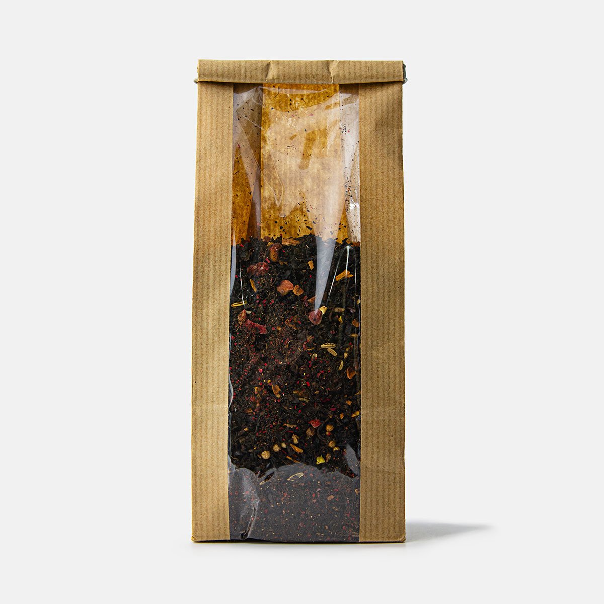 Черный чай, ядро и кожура граната, барбарис, цветки граната, корица, фенхель, кориандр, ароматизатор идентичный натуральному