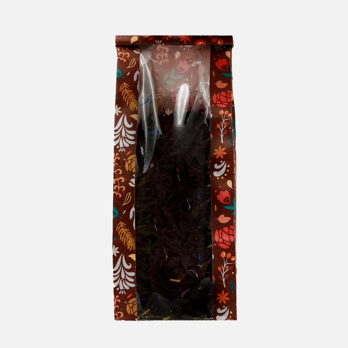 Черный чай, кусочки клубники, лист земляники, василек, ароматизатор.