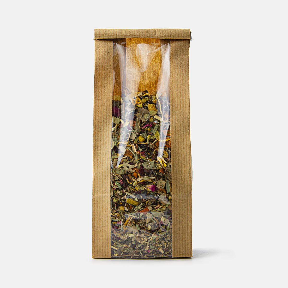 Гибискус, кусочки малины, мята, лист малины, кусочки яблок, лист смородины, ромашка, цедра шиповника, лимонная трава, лепестки роз, календула, ароматизатор идентичный натуральному.