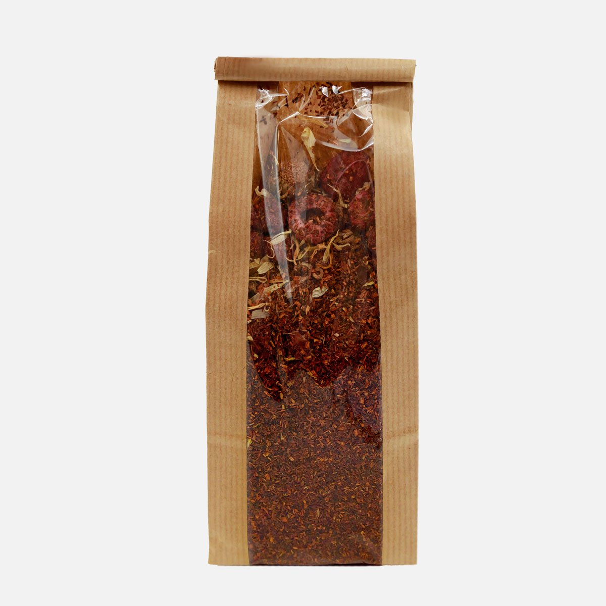 Ройбуш, плоды рожкового дерева (кэроб), малина, календула, ароматизатор идентичный натуральному.